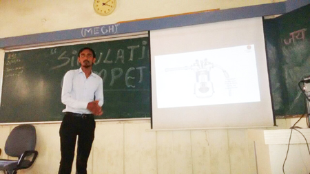 Description of Event : In this event students of 7th semester who have done there vocational training in the month of june-july 2015 have present and shared there traning experience through power point presentation. The event carried throughtout the day on 11/08/2015 in room no. 222. All Students have done there traning through core mechanical company such as B.S.P, JSPL, SIMPLEX, SCEL, BALCO, NTPC, CSEB, NICO, SARDA, BHUSHAN, NIT-RAIPUR SOFTWARE COURSE (SOLID WORK DESIGN SOFTWARE).