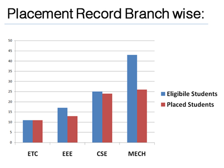 These companies have offered diverse profiles across verticals and functional domains in Mechanical, Elecrical & Electronics, Electronics & Telecommunication and Computer Science Engineering. The students perform with zeal and vigor every year for better placements year after year.