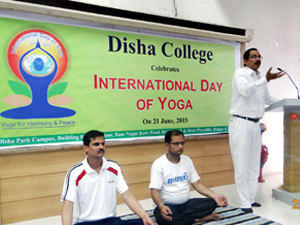 International Yoga Days was observed on June, 21 2015 at Disha Education Society run colleges including Disha Institute of Management and Technology, Disha College, Disha College of Management Studies, Disha Law College and Disha Institute of Medial Sciences and Disha School. In this direction the college management had organized two yoga camps which were attended by students and teachers.